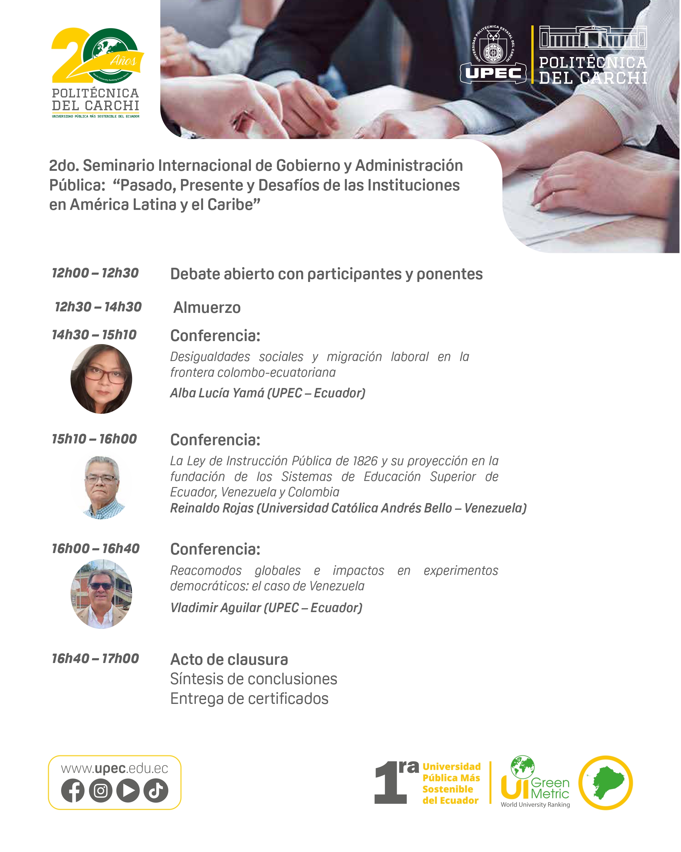 La Universidad Politécnica Estatal del Carchi (UPEC) realizó la clausura del proyecto de vinculación con la comunidad “Cultivando Inclusión en la Ciudad: Agricultura Urbana para Adultos Mayores y Personas con Discapacidad”, una iniciativa orientada a fomentar la participación social…….Leer más>>