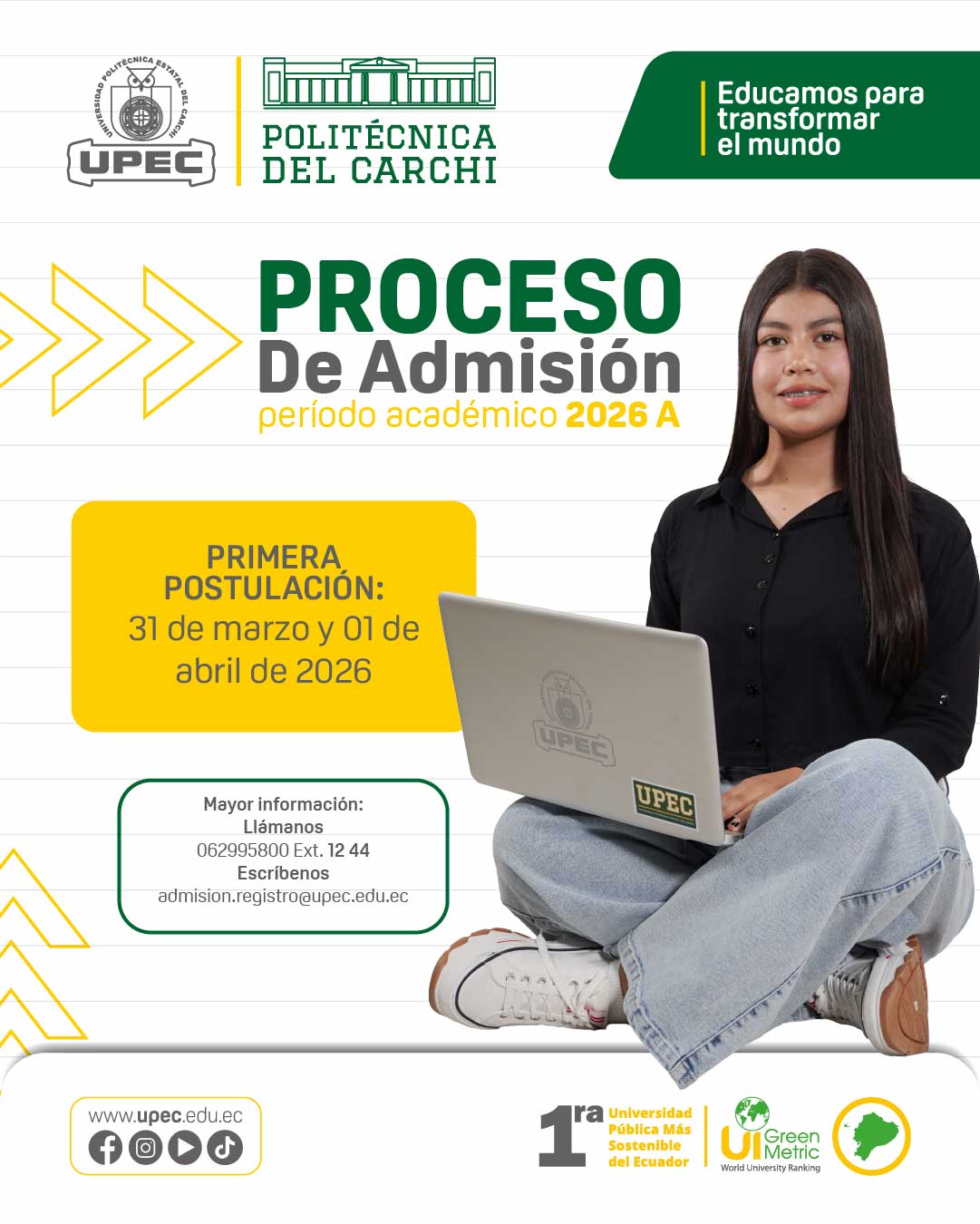 ¡Estudia en la 1ra. Universidad Pública más Sostenible del Ecuador!
