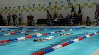 Pie de foto: Como parte del acto de inauguración los estudiantes de Actividad Física y Deportes realizaron una demostración académica pedagógica de natación..